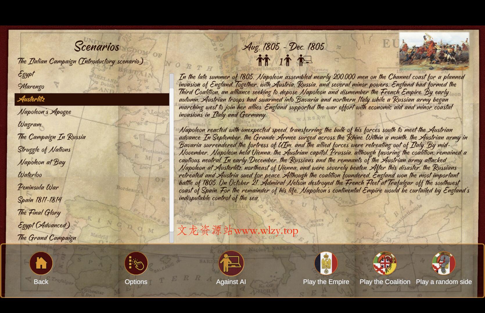 拿破仑之鹰:拿破仑战争游戏/Napoleon’s Eagles: Game of the Napoleonic Wars文龙站长18天前更新关注私信08820拿破仑之鹰:拿破仑战争游戏/Napoleon’s Eagles: Game of the Napoleonic Wars此内容为免费资源,请登录后查看¥0 登录查看免费资源 游戏介绍 玩家可以化身拿破仑,指挥军队穿越欧洲多个战场,体验经典的拿破仑战争,进行战略决策和历史重演。 游戏视频 游戏截图 版本介绍 Build.20908759|容量1.33GB|官方简体中文|支持键盘.鼠标 © 版权声明 版权声明 1 本网站名称:文龙资源站 2 本站永久网址:https://www.wlzy.top 3 本网站的文章部分内容可能来源于网络,仅供大家学习与参考,如有侵权,请联系站长 QQ5348008进行删除处理。 4 本站一切资源不代表本站立场,并不代表本站赞同其观点和对其真实性负责。 5 本站一律禁止以任何方式发布或转载任何违法的相关信息,访客发现请向站长举报 6 本站资源大多存储在云盘,如发现链接失效,请联系我们我们会第一时间更新。 THE END游戏推荐 喜欢就支持一下吧点赞20 分享QQ空间微博QQ好友海报分享复制链接收藏